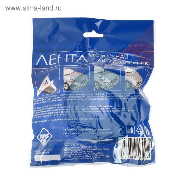 Клеящая лента Nova Bright — это крепёжный элемент, который способен выдерживать большие нагрузки. Лента не растрескивается, не меняет цвет даже при длительном использовании. Двусторонняя клейкая поверхность идеальна для соединения изделий из различных материалов. Подходит для проведения автомобильных работ.