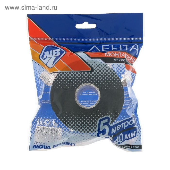 Лента клеящая двусторонняя Nova Bright, на вспененной основе, 40 мм х 5 м