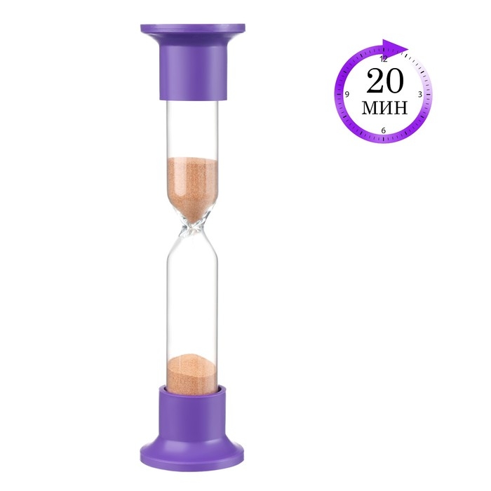 Часы абсолютно безопасны в использовании, так как выполнены из высококачественного пластика. Часы обладают компактными размерами. На каждую колбу нанесена несмываемая маркировка времени. А за мелкозернистым кварцевым песком можно наблюдать бесконечно. Высота песочных часов 20 см, диаметр 4.4 см.
