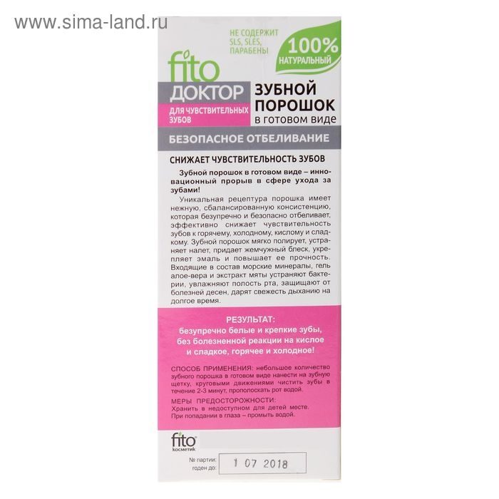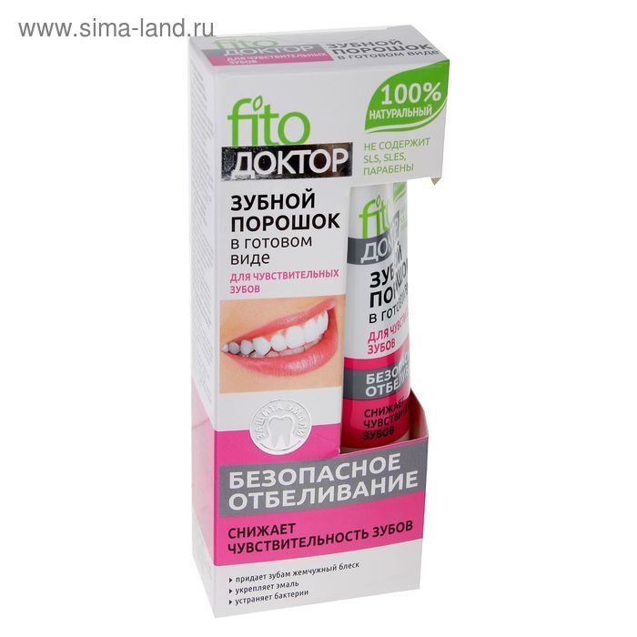 Описание: зубной порошок в готовом виде Fito Доктор "Для чувствительных зубов" — отличное средство для гигиены полости рта.