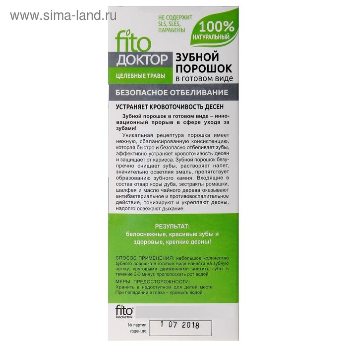 Описание: зубной порошок в готовом виде Fito Доктор ""Целебные травы"" — отличное средство для гигиены полости рта.