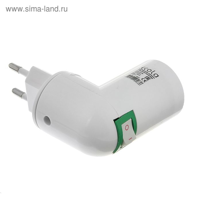 Переходник Ecola, вилка-патрон, E27, 60 х 83 мм, с выключателем, белый