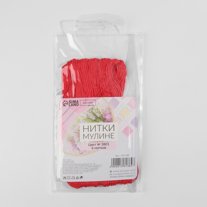 Набор ниток мулине №3801, 8 ± 1 м, 6 шт, цвет глубокий красный