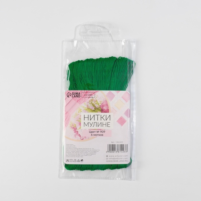 Набор ниток мулине №909, 8 ± 1 м, 6 шт, цвет изумрудный