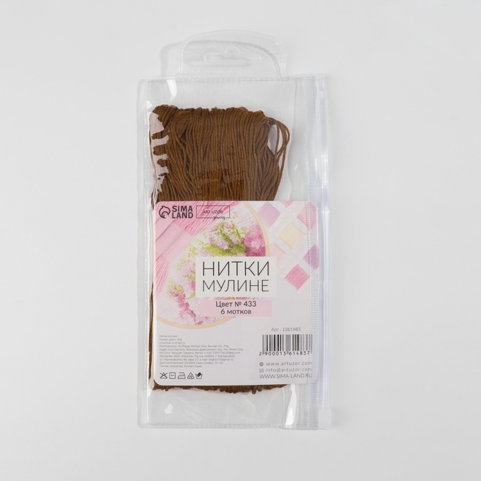 Набор ниток мулине №433, 8 ± 1 м, 6 шт, цвет коричневый