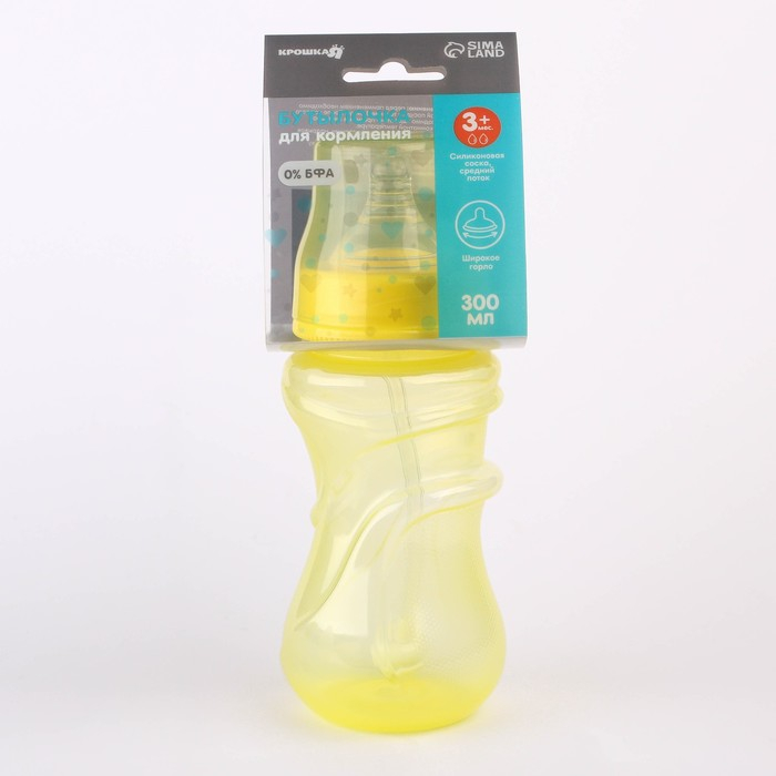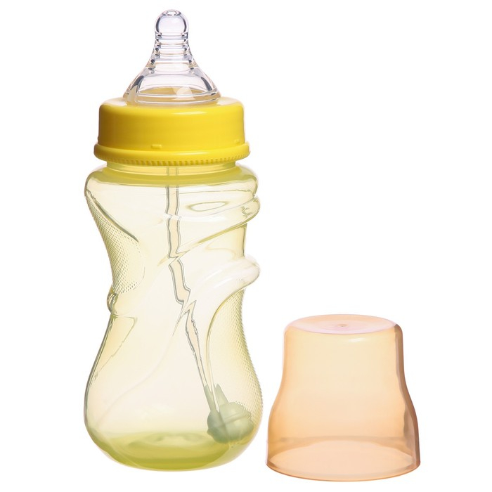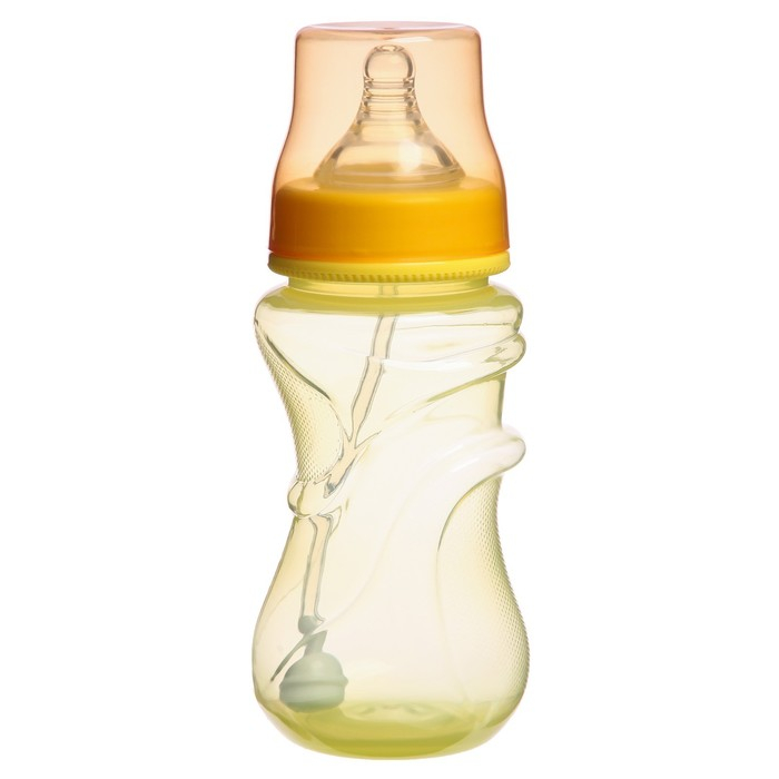 Бутылочка для кормления, широкое горло, средний поток, 300 мл., цвет желтый, +3мес