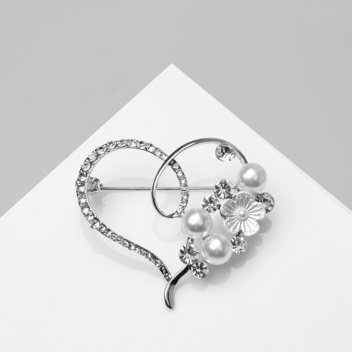 Брошь «Сердце» жемчужное, цвет белый в серебре