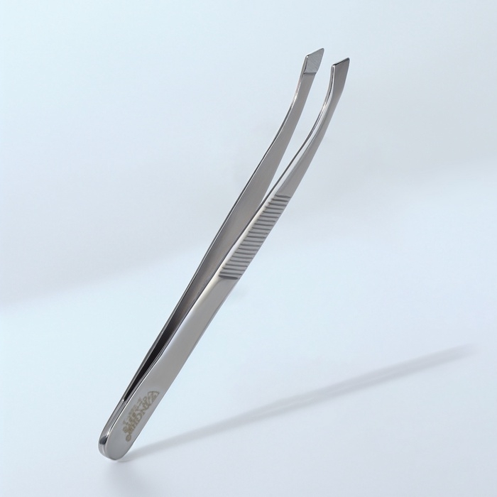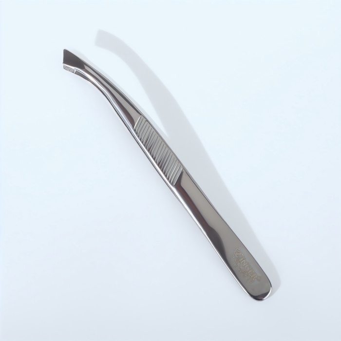 Пинцет загнутый ZINGER, широкий, 8,5 см, на блистере, цвет серебристый, В-5561-S