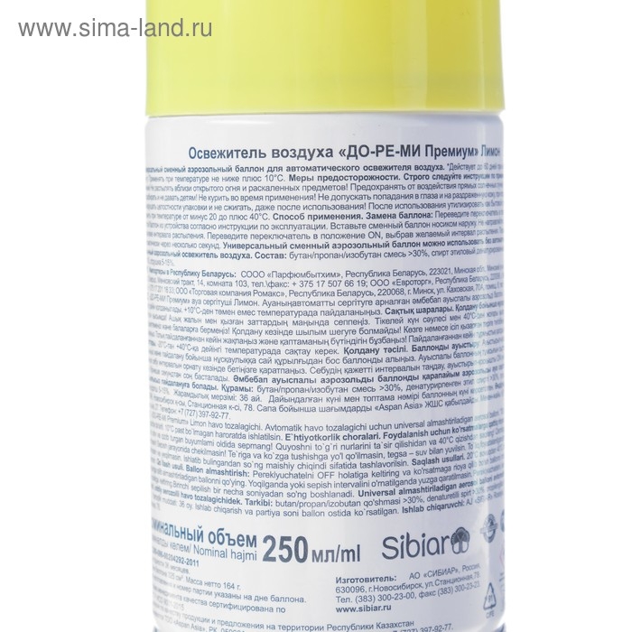 Сменный блок освежитель воздуха До-Ре-Ми Премиум "Лимон", 250 мл