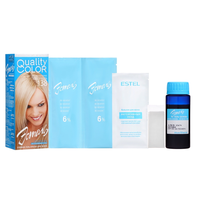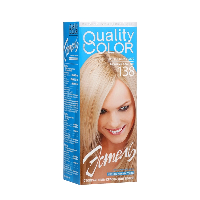 Стойкая гель-краска для волос Estel Quality Color российского бренда Юникосметик. В состав краски входит комплекс витаминов - С, В5, РР, действие которых направлено на укрепление и защиту волос от кончиков до корней. Витаминный комплекс повышает порог сопротивляемости волос к негативным внешним факторам, способствует восстановлению и обновлению клеток волоса. Гелеобразная консистенция краски очень удобна и позволяет проводить окрашивание в домашних условиях.