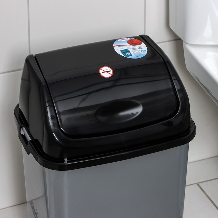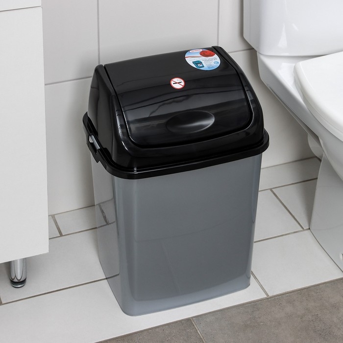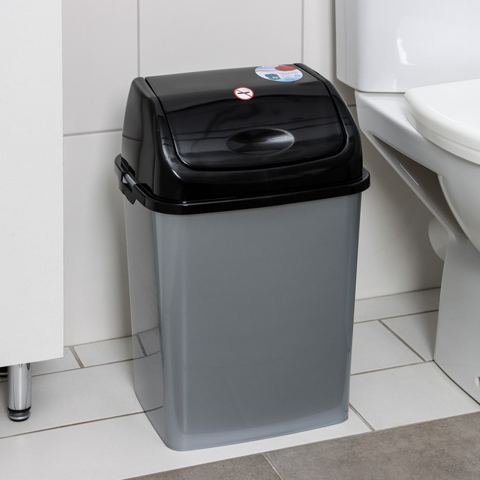 Ведро для мусора «Камелия», 18 л, цвет серебристый перламутр/чёрный