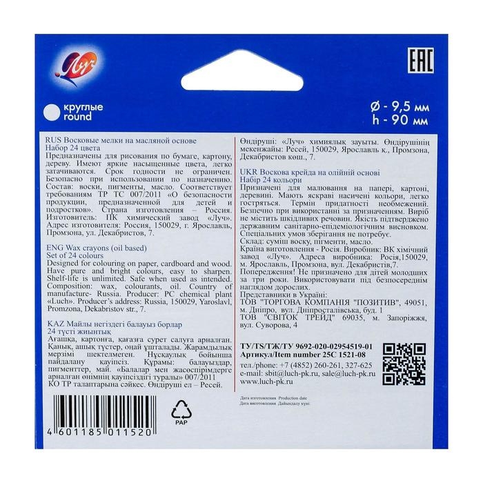 Мелки насыщенных цветов, изготовлены на основе восков с добавлением масла, вследствие чего рисуют мягко, хорошо укрывая поверхность. Мелок толще обычного деревянного карандаша, каждый завернут в бумажную этикетку, его удобно держать маленьким, не привыкшим к карандашам ручкам. Ребенку не нужно сильно нажимать, чтобы появилась линия. Рисуют по бумаге, картону, дереву, камням и другим поверхностям. Прекрасно рисуют в различных техниках в сочетании с акварелью, гуашью и т. д. Безопасны для детей.
