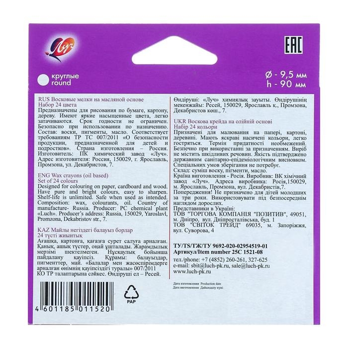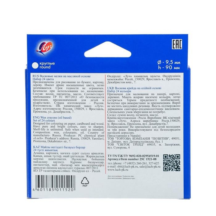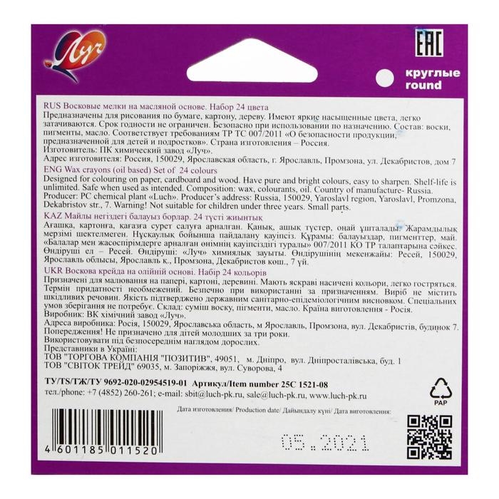 Мелки восковые 24 цвета "Фантазия", круглые, МИКС