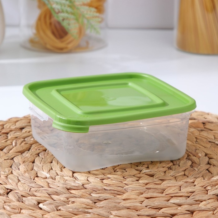 Набор контейнеров пищевых Доляна, 3 шт: 1 л, 18,5×12×7 см, прямоугольные, прозрачные, крышка зелёная