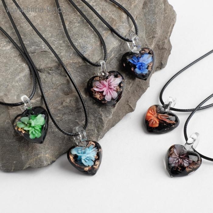 Кулон «Муранское стекло» малый, сердечко темное, цвет МИКС, 45 см