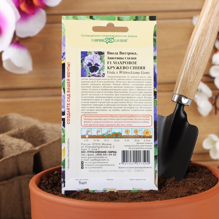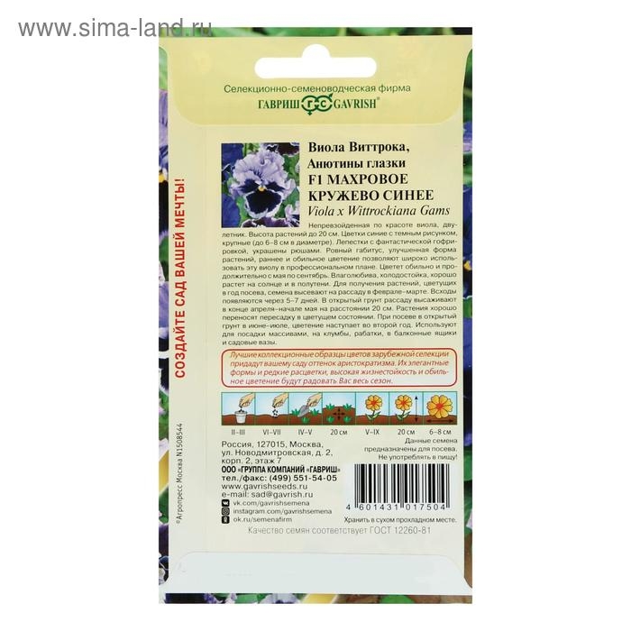 Семена цветов Виола "Махровое кружево", ц/п, 4 шт.