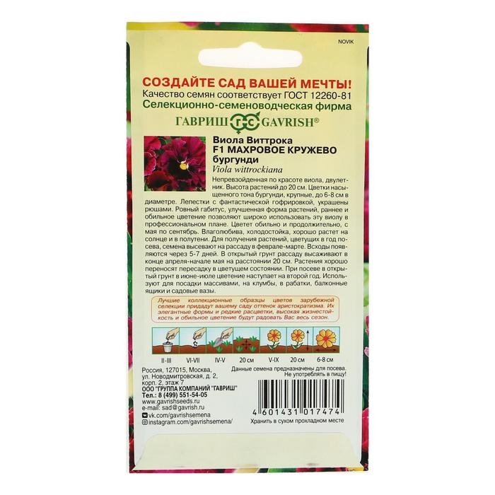 Семена цветов Виола "Махровое кружево", ц/п, 4 шт.