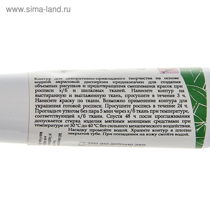 Контуры для декоративно-прикладного творчества на основе водной акриловой дисперсии предназначены для создания объемных рисунков и предотвращения смешивания красок при росписи х/б и шелковых тканей.
