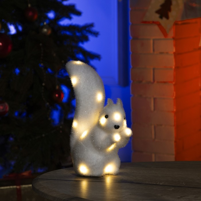 Светодиодная фигура «Белочка» 10 × 25 × 8 см, флок, батарейки ААх2 (не в комплекте), свечение тёплое белое