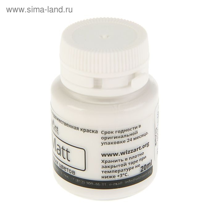 Краска акриловая матовая 20мл, WizzArt Matt, белая, морозостойкая