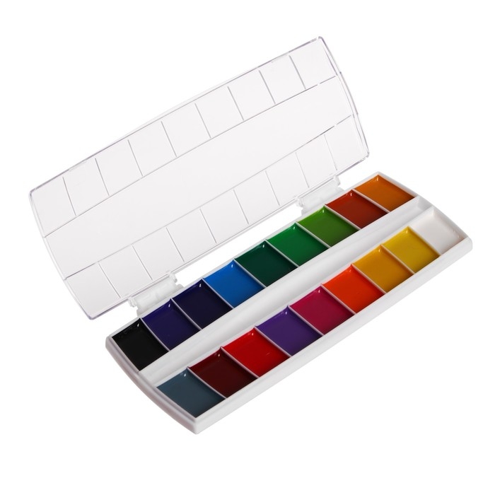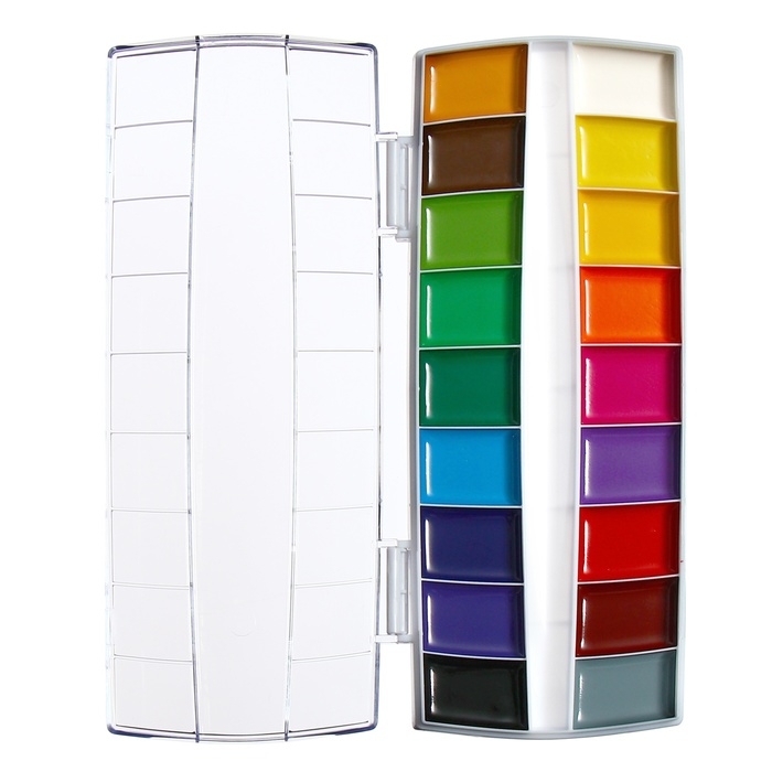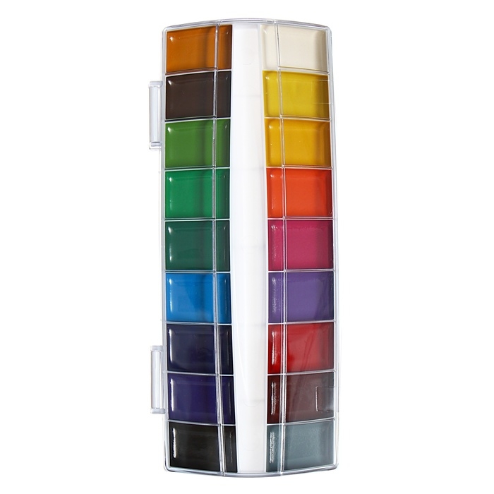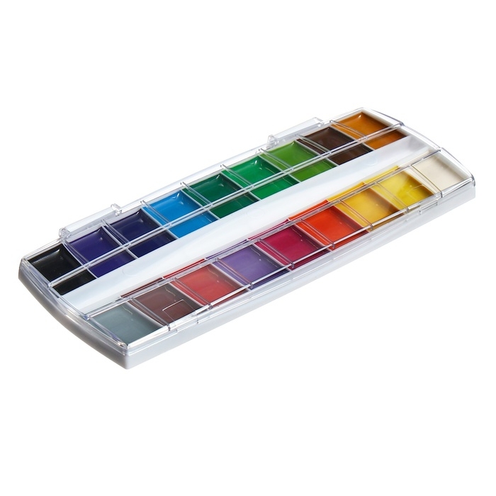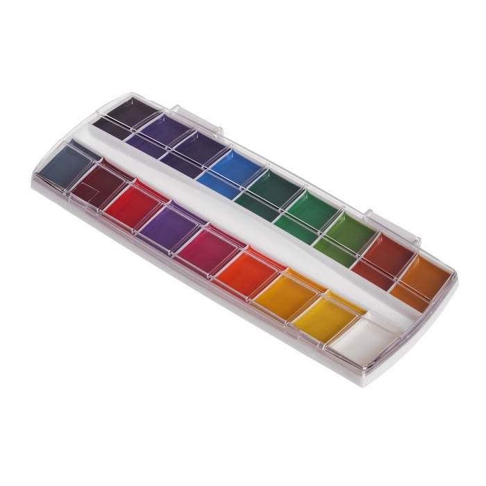 Акварель художественная в кюветах, 24 цвета х 2.5 мл, ЗХК "Белые ночи", пластиковая палитра, 1942090