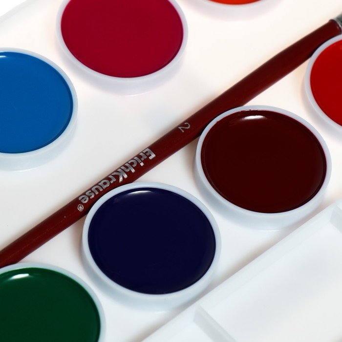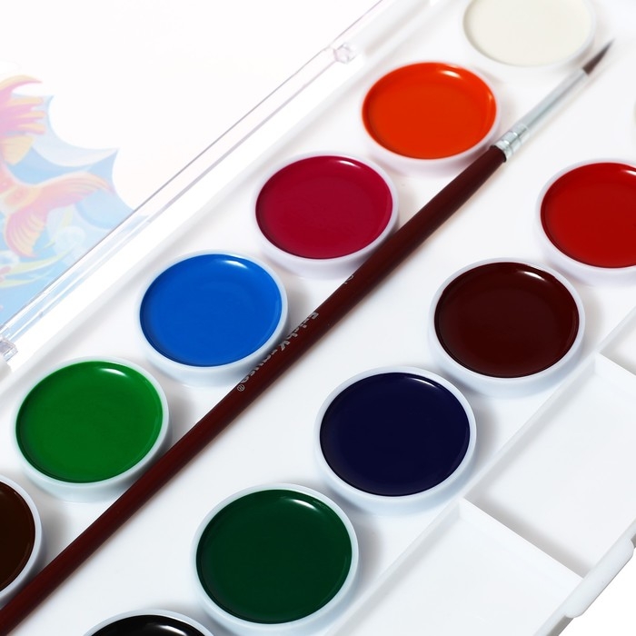 Краски акварельные, в кюветах, с кистью, 12 цветов