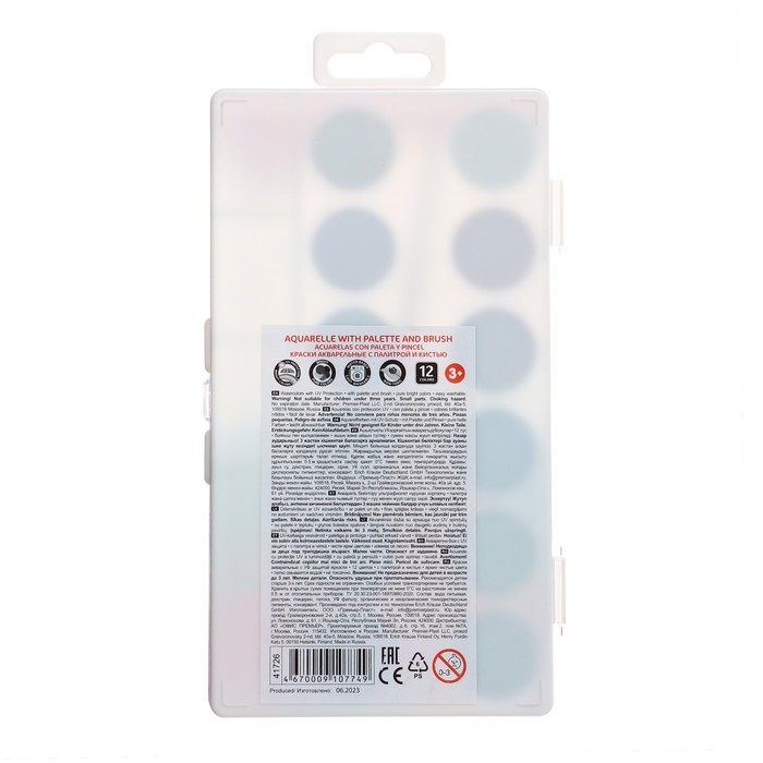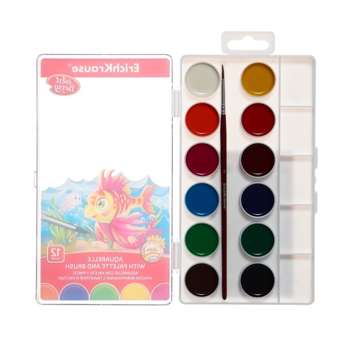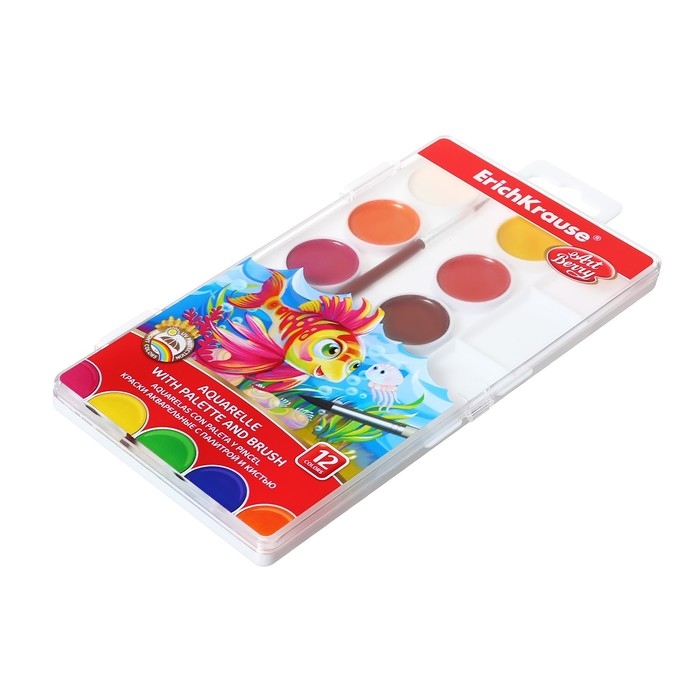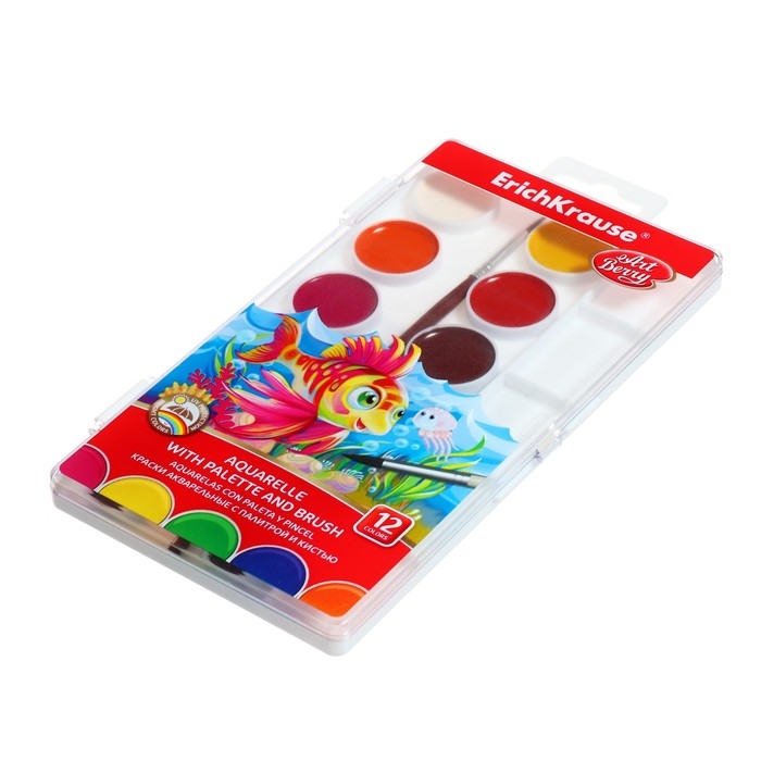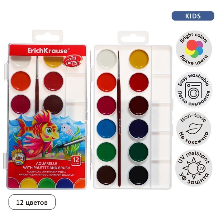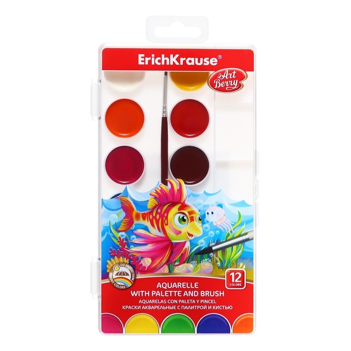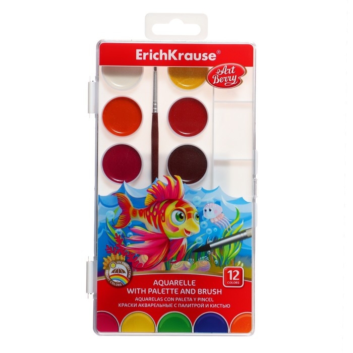 Акварель 12 цветов, ErichKrause ArtBerry, с УФ-защитой, палитра и кисть, пластик, европодвес
