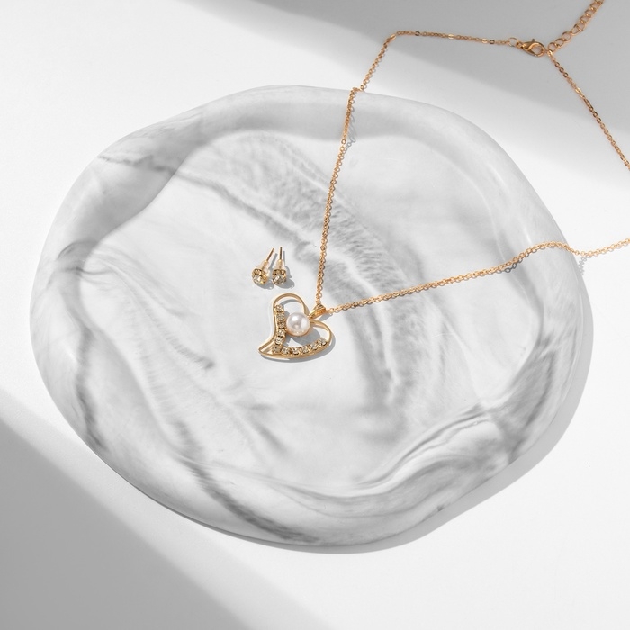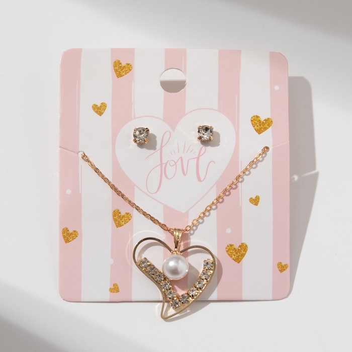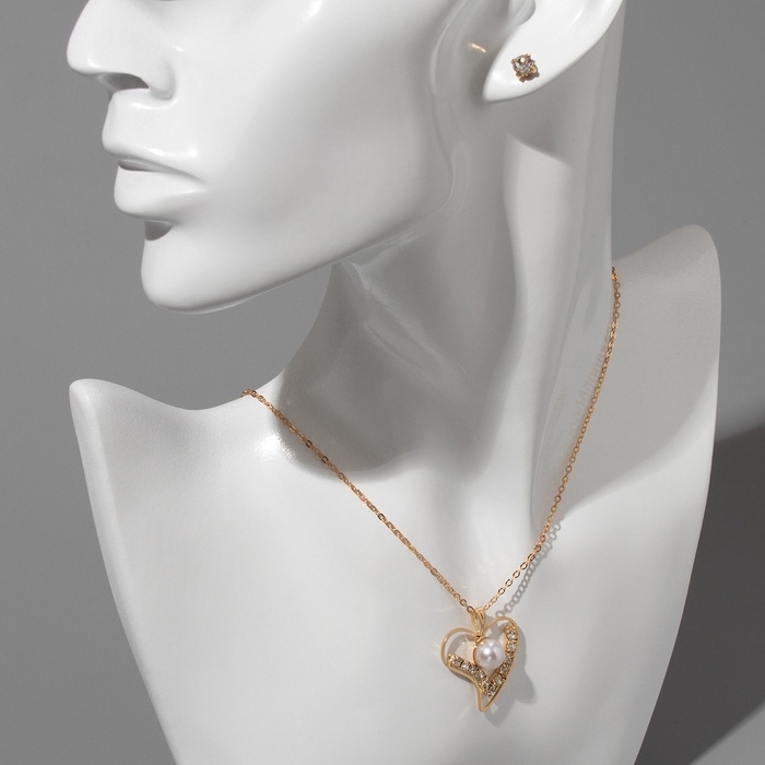 Гарнитур 2 предмета: кулон, серьги «Невесомость», сердечко, цвет белый в золоте, 45см