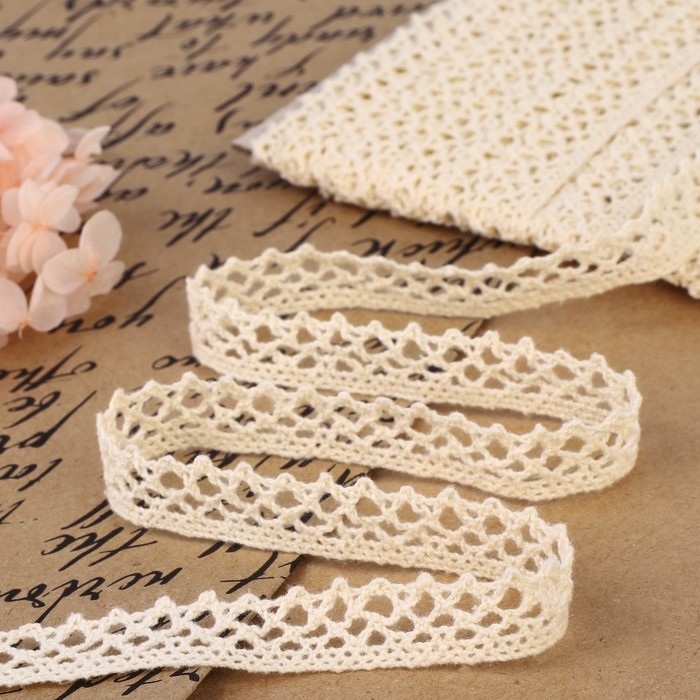 Кружево вязаное, 15 мм × 15 ± 1 м, цвет бежевый
