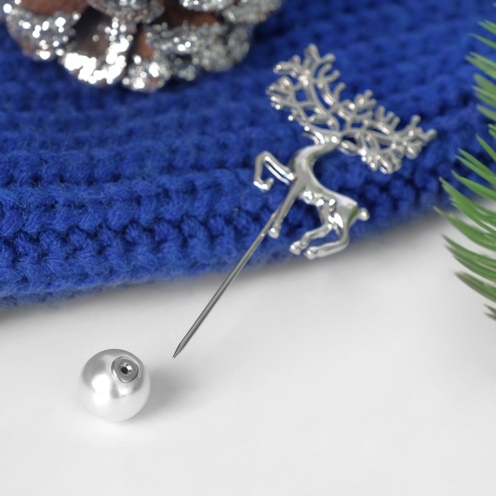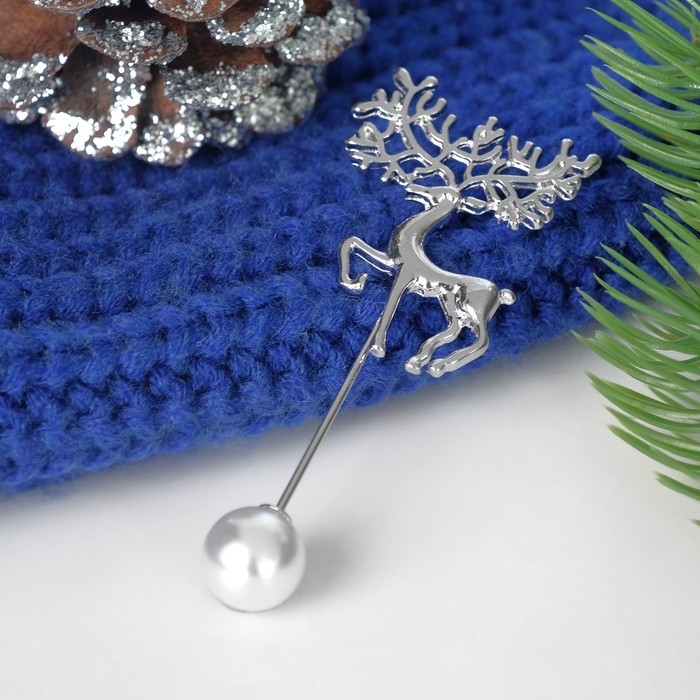 Данная булавка – настоящая находка для модниц, предпочитающих нетривиальные аксессуары. Брошь-булавка станет не только оригинальным дополнением вашего наряда, но и позволит без труда приколоть при необходимости палантин или шейный платок. Используйте её в качестве украшения шляпки, рубашки или галстука. Булавка новогодняя "Олень" с бусиной, 8 см, цвет белый в серебре внесёт особую нотку изящности в ваш образ.