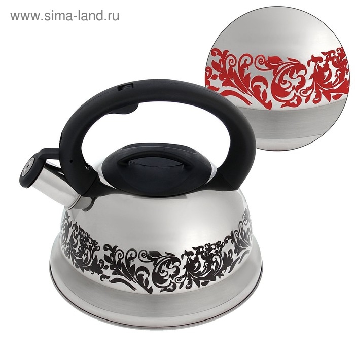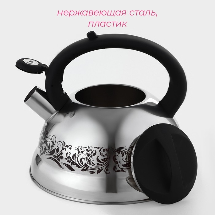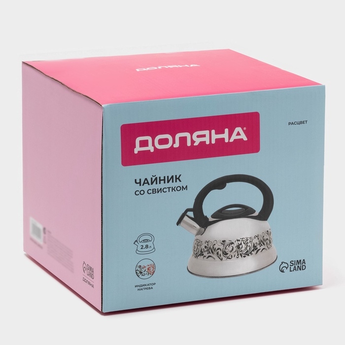 Чайник со свистком из нержавеющей стали Доляна «Расцвет», 2,8 л, фиксированная ручка, с индикатором нагрева