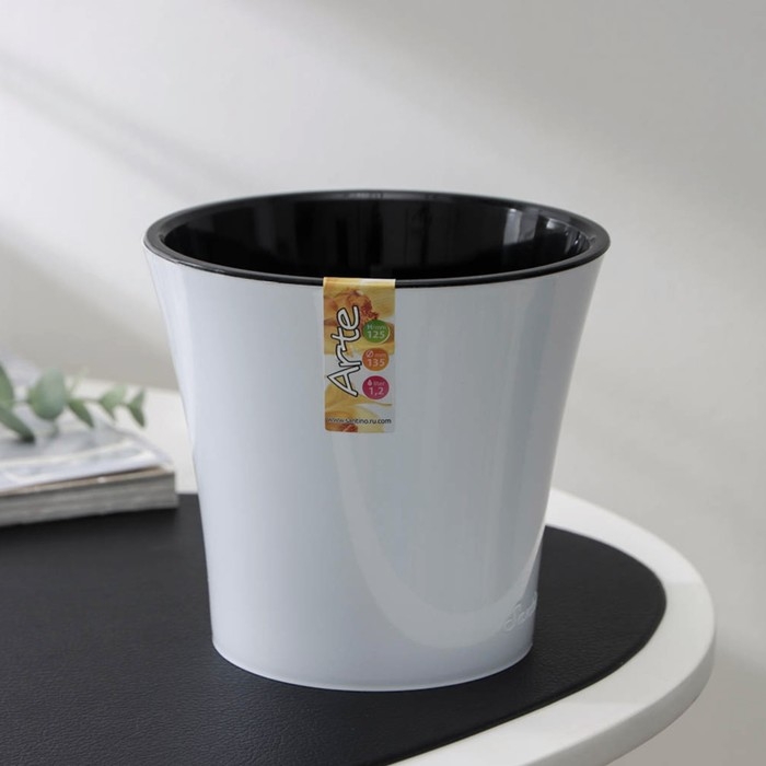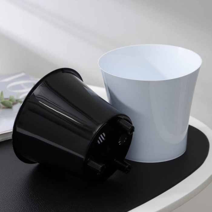 Кашпо для цветов со вставкой «Арте», 1,2 л, бело-чёрное