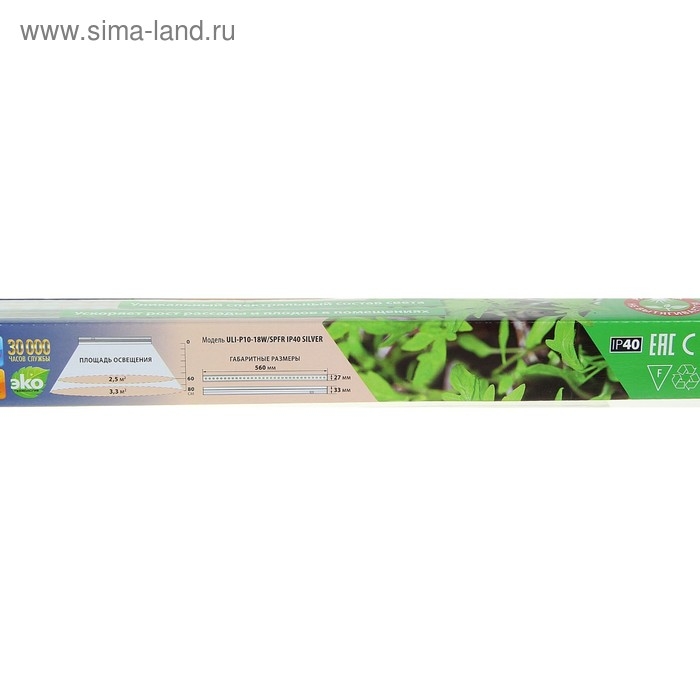 Фитосветильник светодиодный Luazon, 18 Вт, 600 мм, IP40, 220 В