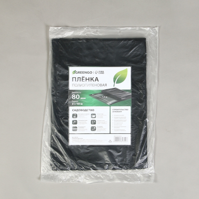 Плёнка полиэтиленовая, техническая, 80 мкм, чёрная, длина 10 м, ширина 3 м, рукав (1.5 м × 2), Эконом 50%, Greengo