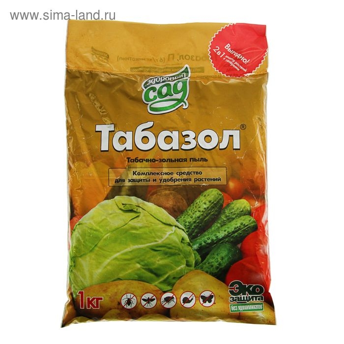 Одна упаковка Табазола ""Здоровый сад"" весом 1 кг достаточна для обработки площади до 1000 кв. м. Это делает продукт экономичным и выгодным для использования.