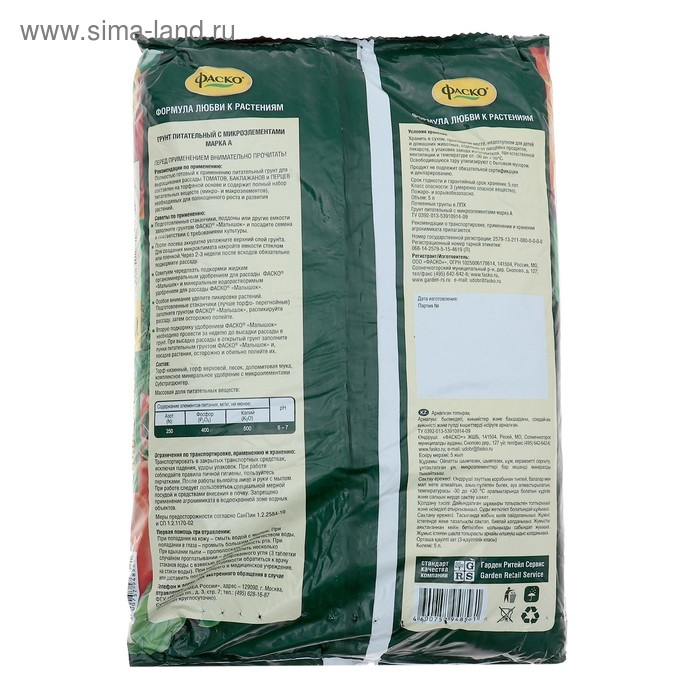 Почвогрунт Фаско Крепыш Рассадный", 5 л