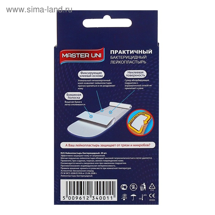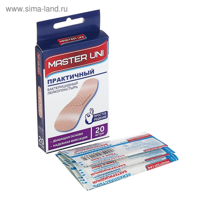 Лейкопластырь бактерицидный MASTER UNI на полимерной основе, 7,2 х 2,3 см