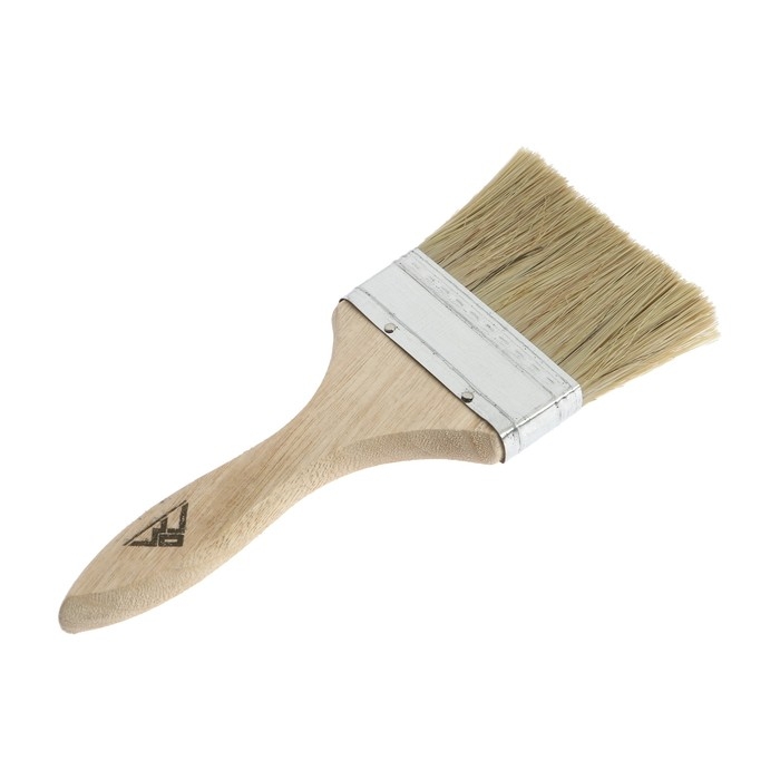Кисть плоская ЛОМ, натуральная щетина, деревянная рукоятка, 3", 75 мм