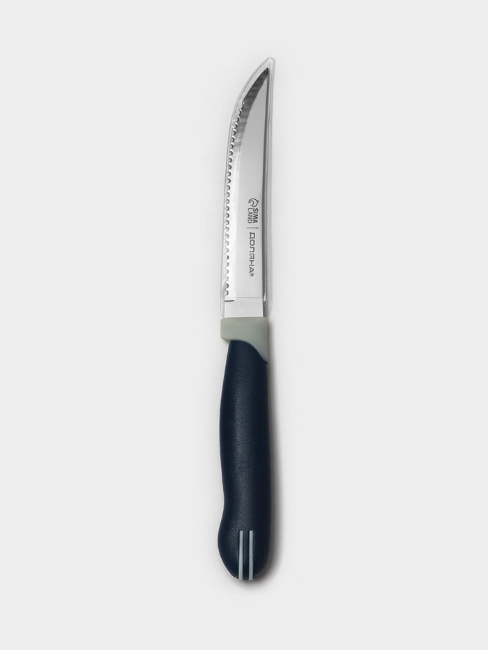 Нож из нержавеющей стали с ручкой из практичного пластика — необходимый помощник для повара. Предмет прослужит долгие годы и сделает готовку быстрой и приятной.