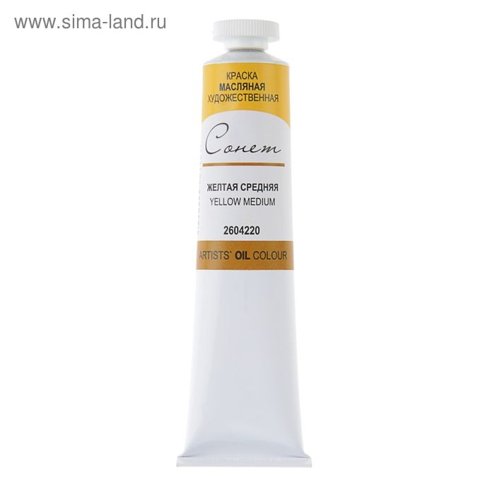 Краска масляная в тубе 46 мл, ЗХК "Сонет", жёлтая средняя, 2604220