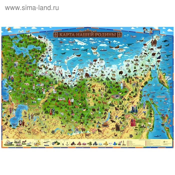 Карта России для детей "Карта Нашей Родины", 101 х 69 см, ламинированная