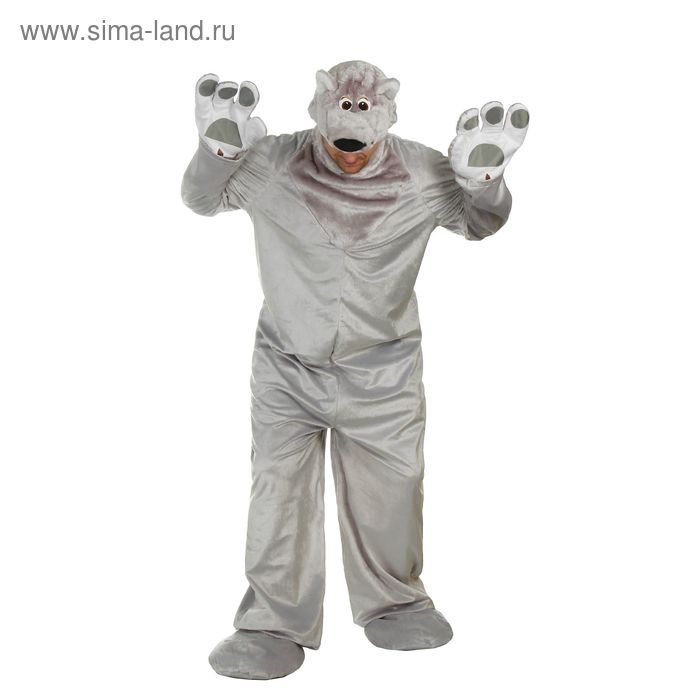 Карнавальный костюм "Белый медведь", комбинезон, шапка, р-р 50-52, рост 180 см