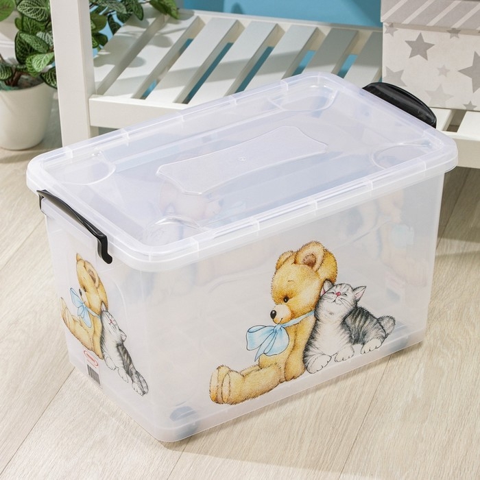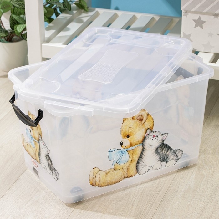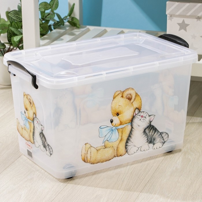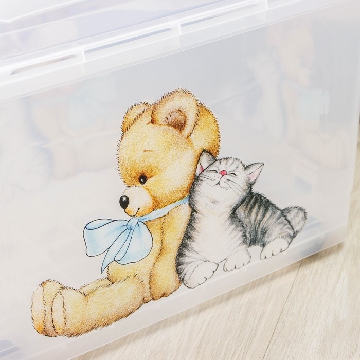 Контейнер для хранения «Мишка и котёнок», 35 л, 50,5×31,5×28 см, на колёсиках, прозрачный
