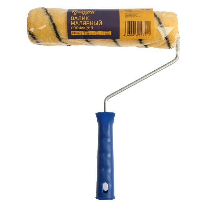 Валик ТУНДРА, полиакрил, 240 мм, рукоятка d=6 мм, D=42 мм, ворс 11 мм