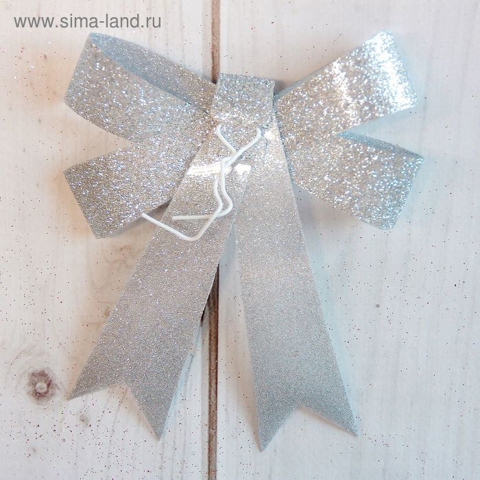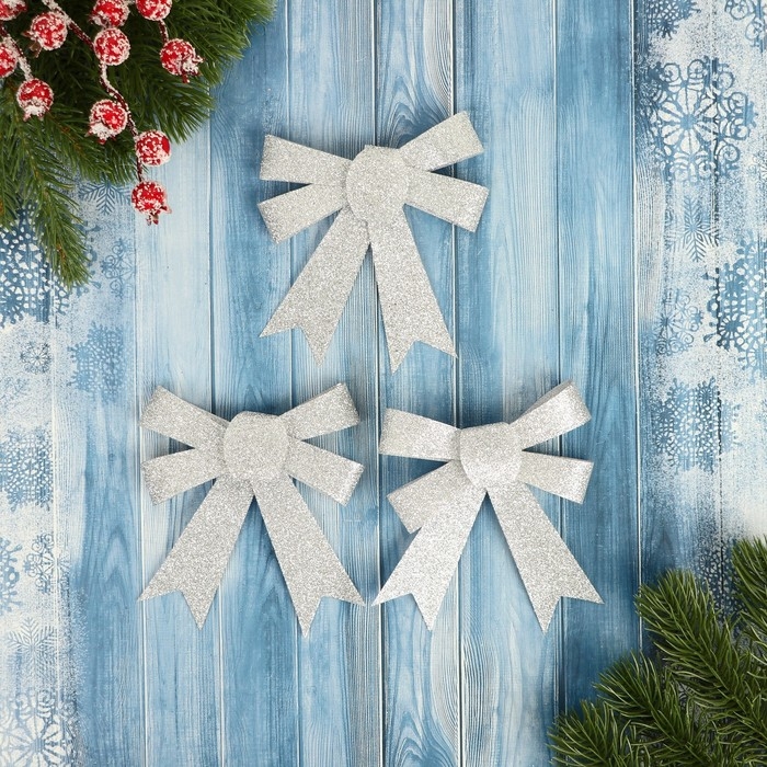 Ёлочные игрушки 3 шт. «Зимнее волшебство. Бант - блеск» пластик, 9х10 см, серебро