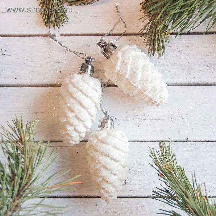 Ёлочные игрушки 3 шт. «Зимнее волшебство. Шишка», белый, пластик, 3х5,5 см