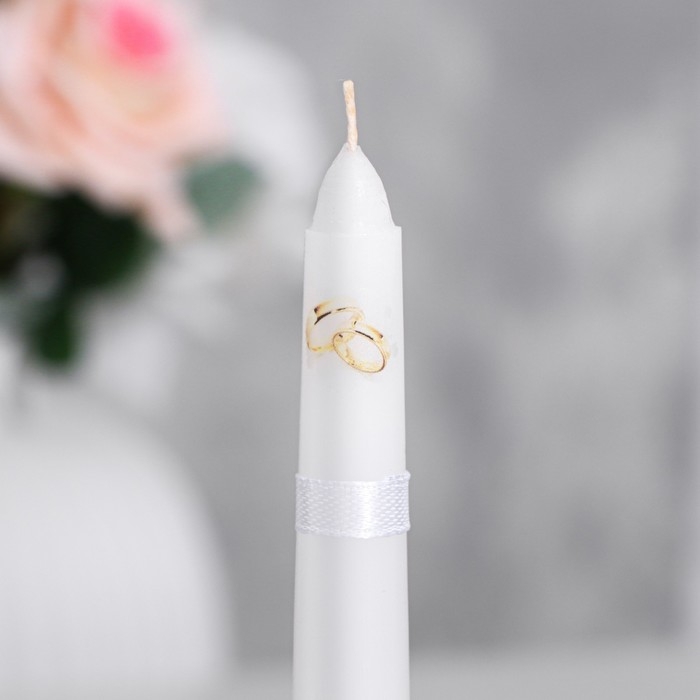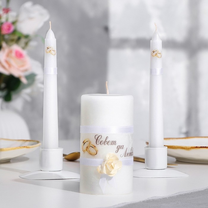 Набор свадебных свечей "Совет да любовь с розой"белый: родительские 1,8х15см; очаг 5х9,5см