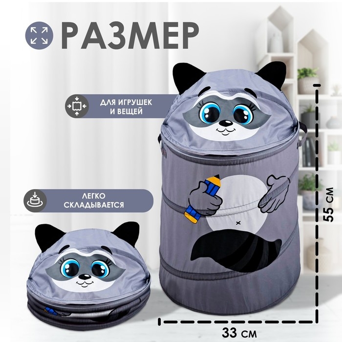 Корзина для хранения игрушек «Енот» с ручками и крышкой