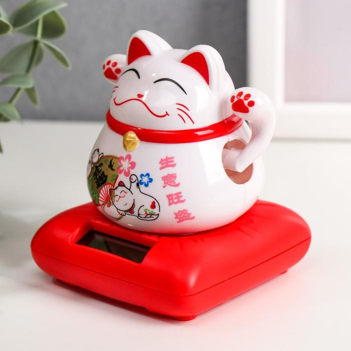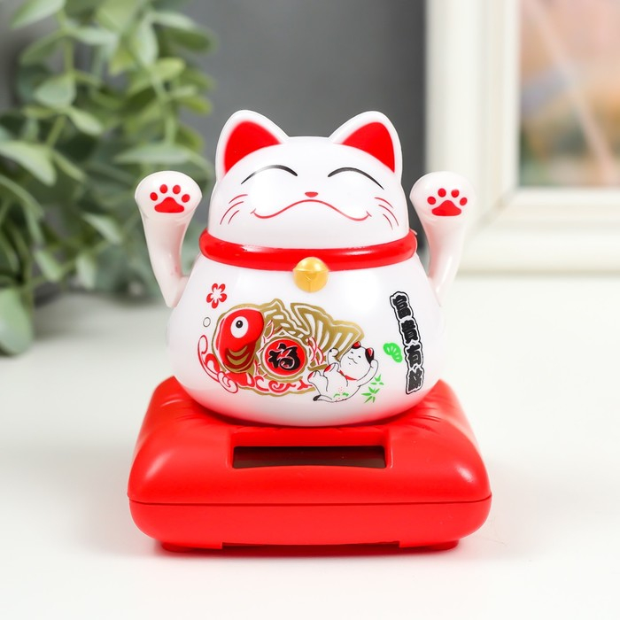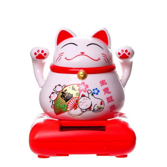 Маятник пластик от солнечной батареи "Кот Манэки-нэко с веером" 8,5х7х7 см