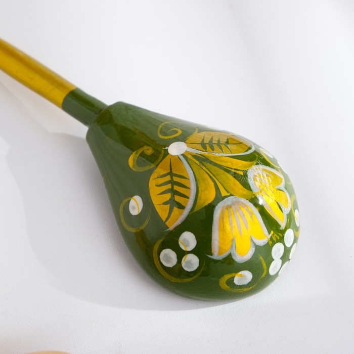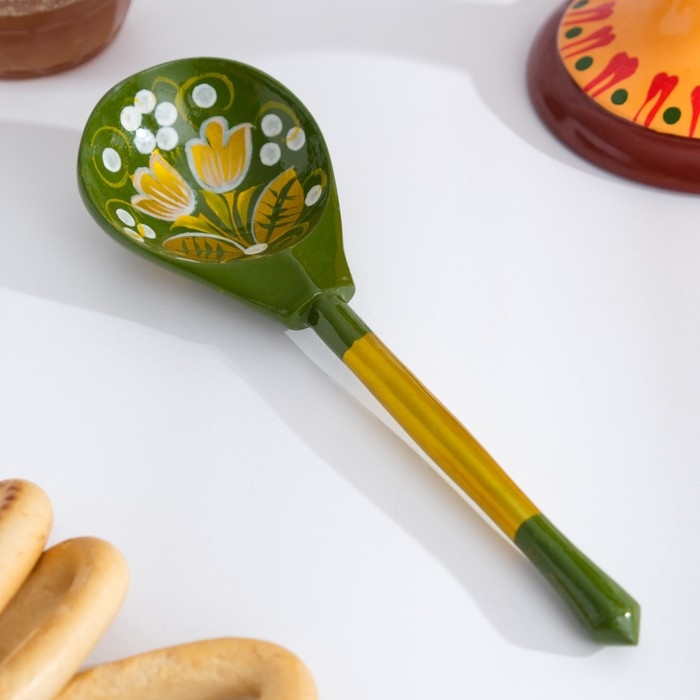 Ложка полубаская «Зеленая роспись», ручная работа